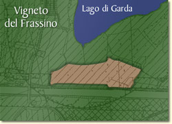 | VIGNETO DEL FRASSINO Inserito in un parco naturale, si trova a ridosso di un piccolo specchio dacqua ricco di fauna migratoria e stazionaria, il laghetto del Frassino. Questultimo è posto in località Broglie, a sud del Lago di Garda, tra Peschiera e Sirmione. Il vigneto di circa 3,5 ettari è vitato esclusivamente a Trebbiano di Lugana con una densità di 4000 viti per ettaro. Unambientazione eccezionale con il più classico dei terreni di Lugana, costituito da una variegata combinazione di argilla stratificata ed intermezzi di sedimentazione micro-organica, che fa scaturire un importante vino bianco, il Lugana d.o.c., dotato di una spiccata ed inconfondibile tipicità. |
